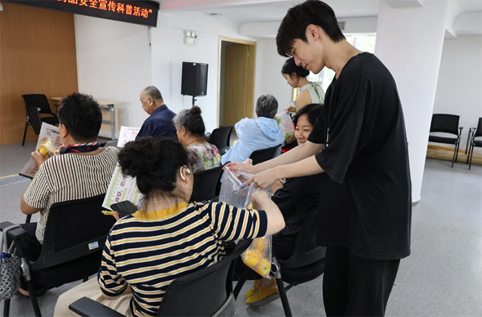 從物料制作到模擬演練,實踐隊始終秉持“精益求精”的專業態度。宣傳部成員嚴格遵循“大字、多圖、案例化”原則,將醫學知識轉化為直觀的海報與傳單;策劃部重制PPT時,反復核對數據準確性與案例典型性;全體隊員參與模擬宣講,扮演“挑刺居民”提出各類問題,如“糖尿病患者能吃這個水果嗎”,倒逼宣講者細化答疑策略。8月30日,正式宣講在鞭指巷社區拉開帷幕,隊員們通過PPT講解、實物對比(真假藥品包裝)、現場答疑等形式,生動解讀健康知識。活動間隙,隊員們還為居民分發新鮮水果,傳遞健康關懷,現場互動頻繁,氣氛熱烈。