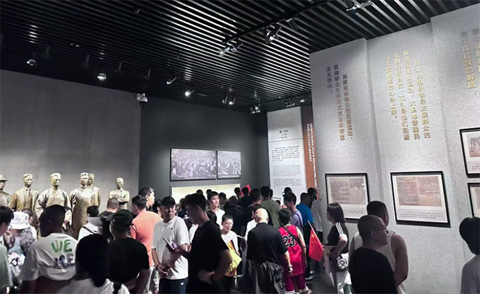 圖為隊員們與大眾一起參觀遼沈戰役紀念館。蘆胤寧 供圖