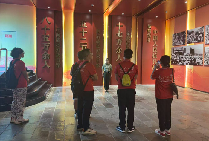 圖為東北抗聯史實館講解員為團隊成員講述抗日戰爭的戰后傷亡統計。陳志豪 供圖