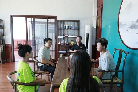 座談結束后,指導老師們來到了辦公室和后勤廚房,與暑期社會實踐團中的成員進行了深入交流,了解實地調研、媒體外宣、活動組織、后勤保障等實踐內容的開展情況。“從一個廚房小白,到在買菜、想菜單、切菜燒菜最后端出一大鍋豐富的飯菜時的巨大成就感,我在煙火氣息中感受到了最真實的成長。”于樹超笑著說。
