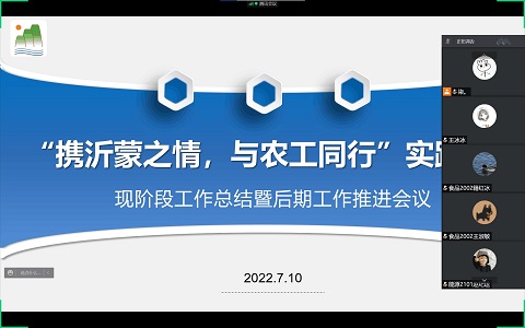同時,為總結階段實踐經驗,進一步明確下一步目標與任務,7月10日晚,山東理工大學“攜沂蒙之情,與農工同行”實踐團于線上召開實踐工作推進會議。實踐團指導老師段升財主持會議,全體成員參會。