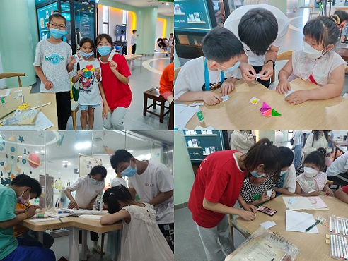 為弘揚中華傳統優秀文化,增強少年兒童對文化自信的理解。6月18日,實踐團于一樓少兒體驗區開展“書簽傳書香”活動,幫助小朋友們制作帶有中國特色元素的書簽,一枚小小的書簽傳遞出愛讀書、善讀書的美好期望。