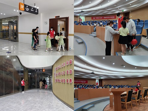 6月19日,圖書館承辦的“書香巢湖-文化講壇”活動中,實踐團成員為前來參加講壇的讀者指引會議廳方向、組織簽到、引導讀者到指定位置就坐,維持現場秩序,發揚志愿服務精神,踐行服務地方的辦學宗旨。