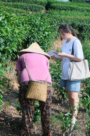 上午10點,實踐團開始走訪村民,發放調查問卷。迎著似火的驕陽,實踐團穿梭在茶園里,走在村落間,與村民們熱切交流,詢問他們對鄉村振興的認識了解及感受,鄉村的基礎設施建設情況和生活滿意度等。