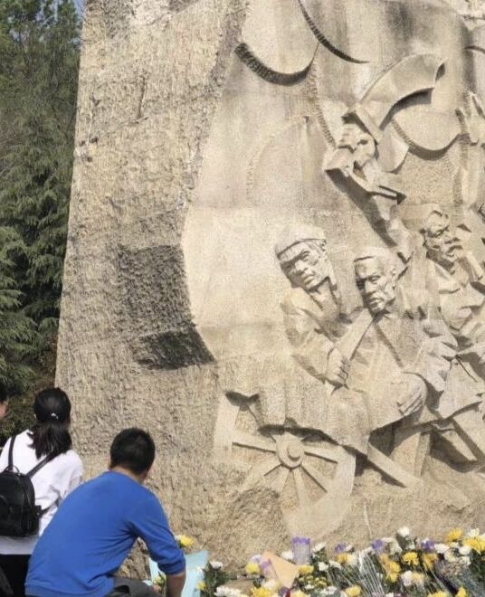 陽光明媚,暖暖地照在身上,孩童們在相互嬉戲,嘴邊的笑容讓人感到人世間的美好。書寫著“江淮英烈,永垂不朽”的大理石雕像群讓我們感到震撼,壁臺前早已站成一條長龍。人群里有人持花默立,有人與同伴親切地交談,有人緊閉著嘴角,有人手持白花低頭默默哭泣。我們隨著祭奠的人群一個接著一個,鞠躬,獻花,敬禮。佇立碑前,我們靜默,因為我們知道,那陌生的名字,凝固著一個個年輕的生命,那寥寥的文字,濃縮了一段烽火連天的歲月。