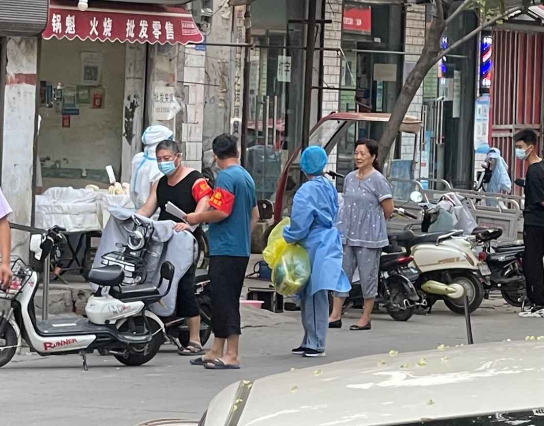 為此,團(tuán)隊(duì)成員前往當(dāng)?shù)鼐游瘯?huì)協(xié)助疫情防控工作人員進(jìn)行核酸采集工作。在全員核酸不遺漏的大前提下,為照顧年邁,行動(dòng)不便或者患有殘疾的人群,社區(qū)往往派遣專門的醫(yī)務(wù)工作者挨家挨戶為行動(dòng)不便者提供上門核酸檢測服務(wù),隊(duì)員有幸能跟隨這些醫(yī)護(hù)人員同行,記錄他們平日里真實(shí)的工作情況。他們與定點(diǎn)核酸采集醫(yī)護(hù)人員一樣,身穿厚厚的防護(hù)服,但是不同的是他們無法一直呆在陰涼的地方,甚至還要拖著滿滿一袋的核酸采集樣本上下樓梯。在烈日的炙烤下,隊(duì)員可以清楚的看到他們臉上的汗珠不停的下落。更令人心酸的是,在路途中會(huì)遇到某些未做核酸人員電話無法接通的情況,緊閉的大門外,這些醫(yī)護(hù)人員焦急的打著電話的場景不僅牽動(dòng)著我的心,也牽動(dòng)著每一個(gè)中華兒女的心。沒有這些辛苦付出的醫(yī)護(hù)人員,我們怎能徹底消滅疫情,怎能給全國人民一個(gè)平安,健康的生活環(huán)境呢。