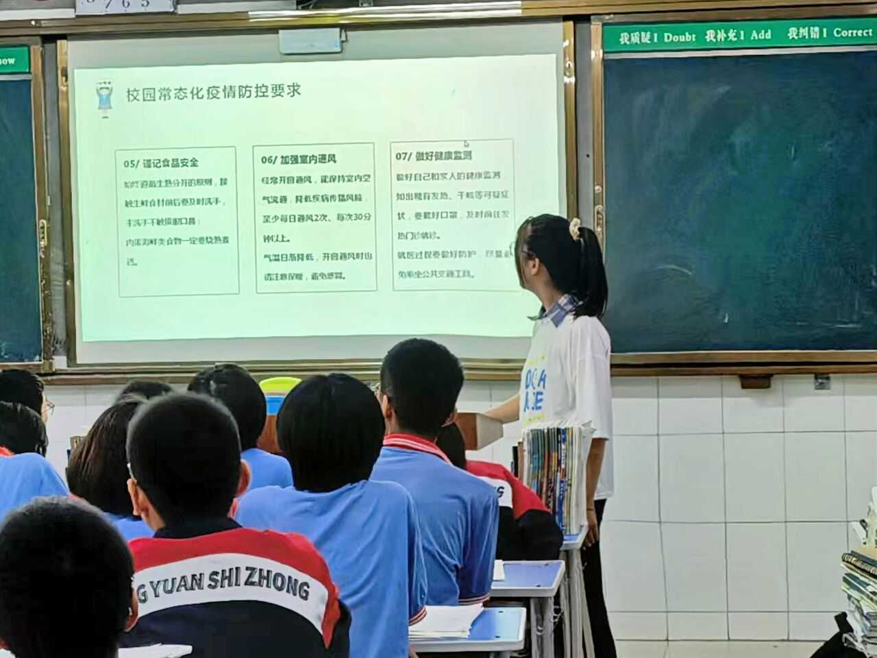 在經(jīng)過與學(xué)校管理層的交涉,團(tuán)隊(duì)成員丁子淇深入課堂,為即將放假的高一學(xué)生進(jìn)行細(xì)致且全面的新冠肺炎德爾塔毒株講解。在講解期間,團(tuán)隊(duì)成員強(qiáng)調(diào)了德爾塔毒株易導(dǎo)致免疫逃逸、病毒載量高與強(qiáng)傳染性的特點(diǎn),將其與變異前的奧密克戎毒株進(jìn)行對(duì)比,顯示出了相較于疫情爆發(fā)初期,現(xiàn)今的防疫環(huán)境并不十分樂觀。但同時(shí),團(tuán)隊(duì)成員也向?qū)W生們表示,雖然病毒變異,但之前所接種的新冠疫苗仍有防護(hù)作用,即使有出現(xiàn)免疫逃逸情況的可能性,但只要學(xué)生們配合學(xué)校的防疫政策,降低接觸幾率,對(duì)于此種病毒也無需擔(dān)心。為證明所講信息的真實(shí)性,團(tuán)隊(duì)成員向?qū)W生們展示了鐘南山老先生對(duì)于新冠疫苗對(duì)德爾塔毒株作用做出的分析。在團(tuán)隊(duì)成員詳細(xì)的講解之后,原本嚴(yán)肅緊張的課堂逐漸活躍起來,部分學(xué)生也開始提出了自己在防疫期間心中產(chǎn)生的問題,希望團(tuán)隊(duì)成員能夠予以解答。
