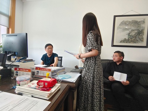 圖為實踐隊員與日照市教育局相關負責領導交談。中國青年網通訊員 聶迦南 攝