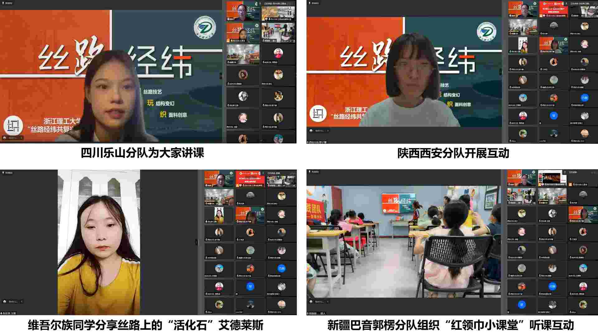 活動當天,正在四川山鄉(xiāng)支教的浙江理工大學研究生王素含連線實踐團各地分隊和參與者,帶來歷代名錦故事、絲綢紋樣解讀、優(yōu)秀作品分享、如何手工織布的精彩課程,并在課堂中結合知識點分別與來自新疆庫爾勒、西安、泉州、杭州的朋友們開展線上互動。