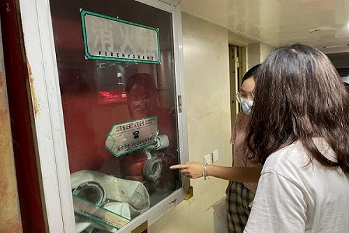 隨后,實踐團對消防器材、消防通道等進行安全排查,發(fā)現(xiàn)小區(qū)內(nèi)部消防安全設施較為齊全,消防宣傳較為到位,但地下停車場存在消防栓存在破損、一處電線出現(xiàn)老化等問題。針對以上安全隱患問題,團隊成員從專業(yè)角度出發(fā),對小區(qū)負責人提出相關建議:及時更換老舊電線,整理雜亂線路;根據(jù)《消防法》應定期定檢消防滅火設施,對消防栓每年至少進行一次全面檢測,每半年檢查滅火器一次,確保完好有效,同時檢測記錄應當完整準確,存檔備查,若發(fā)現(xiàn)滅火器不正常應及時更換或送消防單位充裝;定期開展消防應急演練,加強居民對突發(fā)火災的應急處置能力,增強居民避險自救技能。