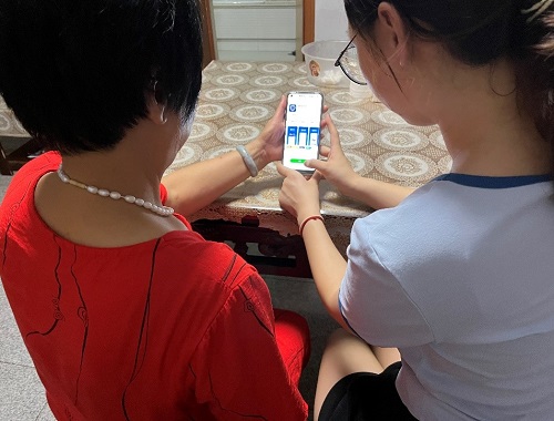 圖為社會實踐團“進農(nóng)村”指導村民下載“國家反詐中心”APP