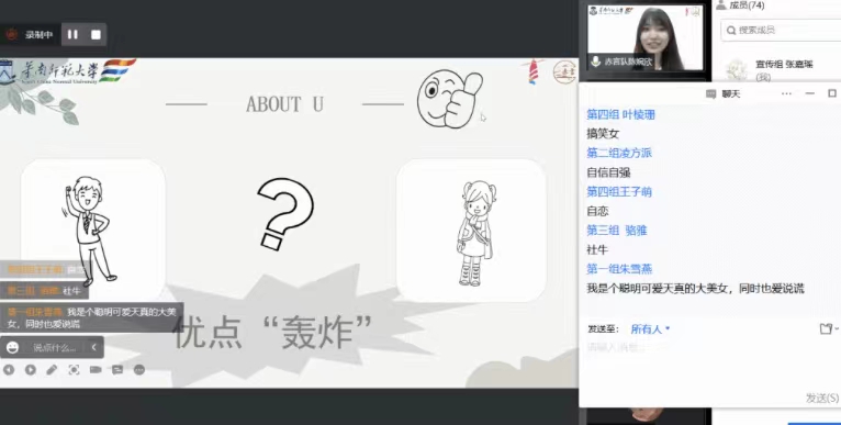 “敞開心扉,沐浴陽光”由陳婉欣開展授課,鼓勵學生與自己對話,深入內心深處,正確認識自我。課堂上,學生在主講人的引導下全面地客觀的認識自我評價自我,同時悅納自我。