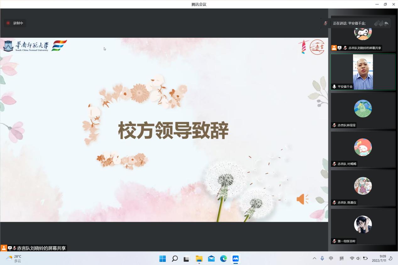 儀式第一項為校長張漢強致辭。張校長首先對學生寄語。“業余時間決定命運”,這一關鍵話語如晨鐘暮鼓,被反復提及。校長希望學生們能夠理解它的涵義并將其付諸實踐,積極參加課程活動,讓假期過得更加充實、有意義。隨后,張校長對赤言隊的到來致以熱烈的歡迎。同時,張校長表示會全力支持本次實踐活動,并祝愿本次活動取得圓滿成功。