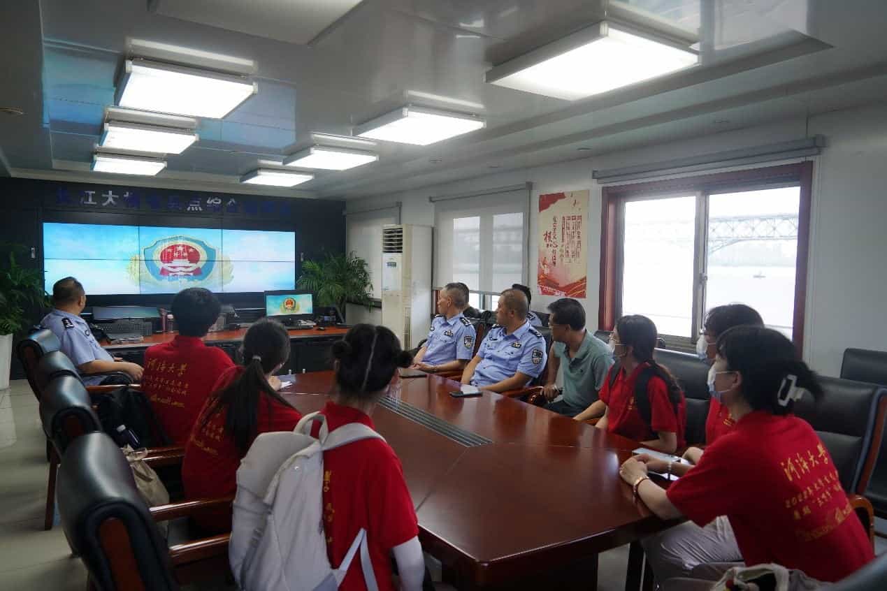 2022年7月11日下午,實踐團隊在指導老師沈潔老師的帶領下,前往南京市水上公安局所在的水警一號進行實地觀察學習。