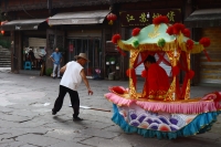 安居古鎮(zhèn)的民俗表演也是當?shù)匾淮筇厣瑢嵺`隊通過視頻直播向觀眾展示安居特色的民俗表演,如水云龍、戲劇表演、縣令出巡等等。此外,實踐隊還邀請了當?shù)孛煨偫蠋煘橛^眾講解當?shù)孛袼妆硌荩瑤ьI(lǐng)觀眾感悟安居特色文化,在實踐隊成員與肖剛老師的努力下,直播效果良好,受到了觀眾的喜愛。