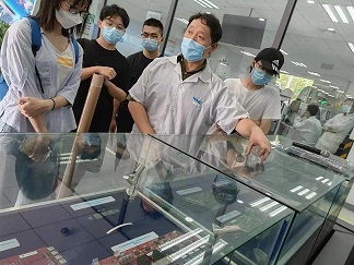 在工作人員的介紹下實踐團了解到,新型變壓器大幅度降低變壓器空載損耗,,空載損耗降低50%,同時立體卷鐵心變壓器在達到1級能效基礎上大量節材、節約使用面積,使得“雙碳”目標的實現有跡可循。