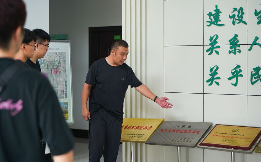 上午9時(shí),碳達(dá)新生實(shí)踐隊(duì)從東營(yíng)市區(qū)乘公交車前往利津縣,經(jīng)過(guò)長(zhǎng)途顛簸于11時(shí)到達(dá)林場(chǎng)入口處。王莊沙區(qū)林場(chǎng)工作人員韓濱帶領(lǐng)實(shí)踐隊(duì)進(jìn)行參觀,由林海六路駛?cè)肓謭?chǎng)區(qū)內(nèi)。“這片區(qū)域是無(wú)絮楊”“這兩排是柳樹(shù),后面的是榆樹(shù)”“這一片是優(yōu)質(zhì)果品生產(chǎn)基地,改良品種可以控制成熟時(shí)間”……林場(chǎng)的工作人員由于每日工作其中,對(duì)于林場(chǎng)的每一處都了如指掌。林場(chǎng)區(qū)參觀結(jié)束后,實(shí)踐隊(duì)進(jìn)入辦公樓,學(xué)習(xí)了解林場(chǎng)的黨建工作和優(yōu)秀成果,參觀林場(chǎng)工作人員的工作和休息區(qū)域。隨后,實(shí)踐隊(duì)成員在食堂內(nèi)進(jìn)行午餐,食堂工作人員介紹道,這里的菜品全部來(lái)自于林場(chǎng)內(nèi)自己的養(yǎng)殖種植,做到綠色純天然。參觀的最后一項(xiàng),工作人員帶領(lǐng)實(shí)踐隊(duì)員登上森林防火瞭望塔,俯瞰整個(gè)林區(qū),并向?qū)嵺`隊(duì)員們介紹未來(lái)王莊沙區(qū)林場(chǎng)的發(fā)展前景,邀請(qǐng)大家五年后有機(jī)會(huì)再次參觀。
