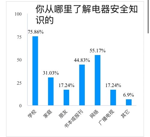 通過調查可知,大部分的人都是因為缺少安全用電的知識從而造成了一些電器事故,有著不良的用電習慣的人也不在少數,這提醒我們在平時的生活中要多注意用電的習慣和一些小的細節,在使用電器的時候要反復閱讀使用說明以保證能夠正確的使用電器。并且大多數人也都是在學校由校方組織的相關活動了解或在網上偶爾看見相關內容,平時在生活中對此了解甚少,所以小隊決定開展此次實踐,具有一定的現實意義。此外小隊發現大多數人都對自己的電器有一個維修的習慣,所以掌握正確的維修方式也是至關重要的。關于用電的危險行為,小隊發現絕大部分人都曾用濕手觸碰插座或開關,正是因為這些細節上的小習慣,有時卻會造成不可逆的損失。因此,通過此次“三下鄉”實踐活動,小隊希望將安全用電知識普及到每一個鄉村家庭,讓他們就算距離城市有一段距離,也能正確的,安全的使用當前時代的電器產品。