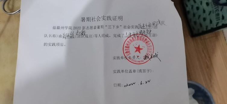 6月24日,小隊成員赴滁州市腰鋪鎮開展實地的社會實踐。首先是前往腰鋪的文明實踐廣場,在二樓的辦公室中找到該鎮上的書記,說明小隊此番的來意,簡要匯報小隊實踐的計劃,并表示在實踐結束后給予小隊的實踐證明蓋章認可。