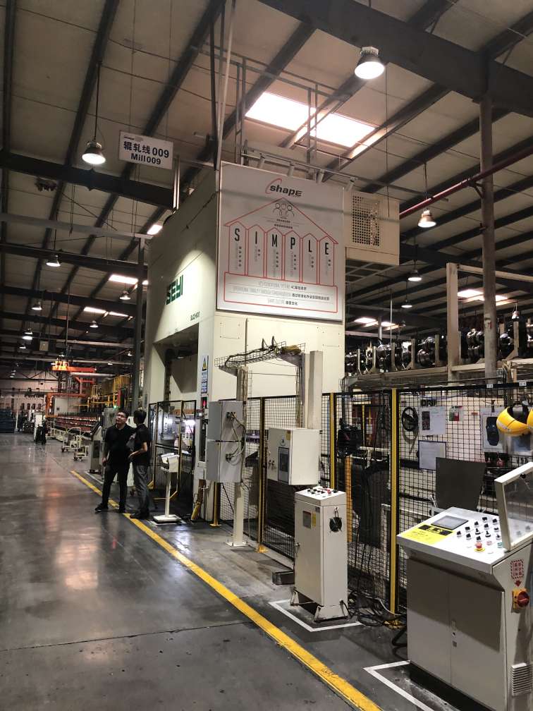 隨后,實(shí)踐團(tuán)參觀了順普的高精度輥壓成型工藝。高經(jīng)理向?qū)嵺`團(tuán)展示了數(shù)控輥壓設(shè)備的運(yùn)作以及機(jī)器人焊接的操作過程,充分展現(xiàn)了企業(yè)生產(chǎn)過程的流程化與數(shù)字化。除此之外,實(shí)踐團(tuán)從生產(chǎn)裝備及產(chǎn)線布置中感受到了順普智能制造的專業(yè)與高效。