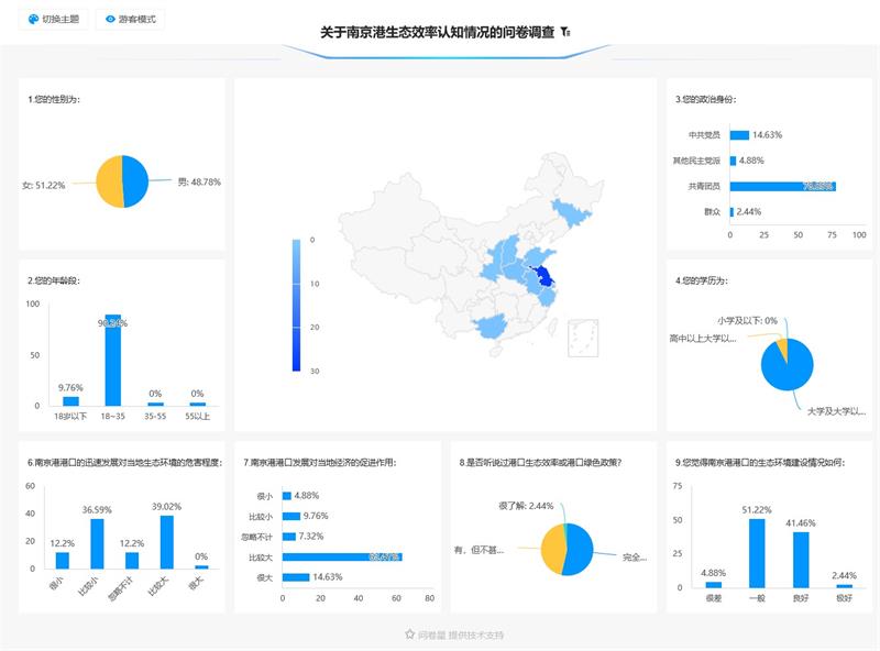 在調查的近百份問卷中,團隊成員了解到大部分當地民眾對港口生態效率或港口綠色政策不甚了解或完全不了解,然而在此基礎上,當地民眾普遍認為南京港港口的生態環境建設達到一般水平及以上,由此可見,政策的實際落地效果是良好的,已滲透入民眾的觀念中。綜上,實踐團成員認為,南京港港口的綠色政策宣傳力度應加大,并應在建設中加強對生態環境的保護,走生態與經濟同發展的中國道路。