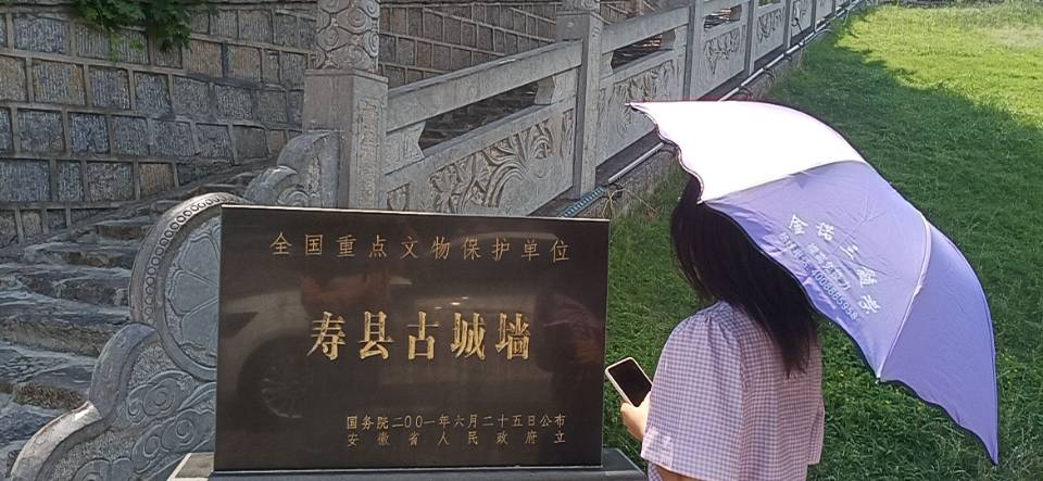 團隊成員在古城墻及附近地區認真參觀,依次游覽了賓陽、通淝、定湖、靖淮四門,淝水之戰舊址等地。在實地走訪中,團隊成員和古城講解員積極交流,了解古城墻建立歷史,保護措施以及未來的發展計劃,在交流中,團隊成員受益頗多。在古城墻附近有許多從各地趕來的參觀者,我們對一些參觀者進行了采訪,了解到參觀者對壽縣古城墻的熟悉程度,對歷史文化名城的參觀體驗和感悟,還有對中華優秀歷史文化傳承的看法及個人會做出的努力等等。