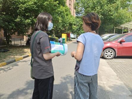 6月16日到17日,實(shí)踐小隊(duì)調(diào)研的對象為較高年齡的人群。圖中的一位女士便是其中一位。在采訪中,這位女士表示自己對垃圾分類的了解程度并不高,平時(shí)并沒有垃圾分類的習(xí)慣。實(shí)踐小隊(duì)成員首先介紹垃圾分類的相關(guān)知識,之后實(shí)踐小隊(duì)成員向這位居民提了幾個相關(guān)問題,這位居民的回答完全正確,并且表示今后會認(rèn)真對待垃圾分類這件事。