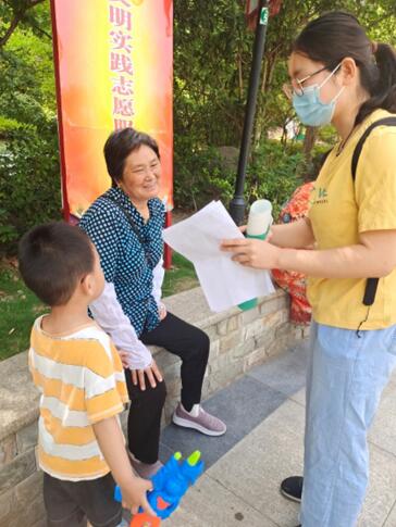圖為隊(duì)員對居民進(jìn)行垃圾分類的調(diào)研   楊靜攝