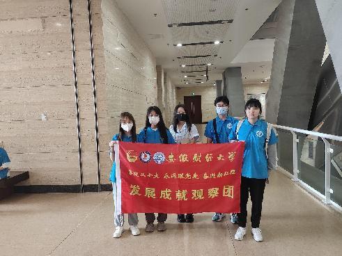 6月26日,調研團隊一行人來到了蚌埠市博物館進行了參觀。該館位于安徽省蚌埠市蚌山區東海大道市民廣場西側,市政府以南。總占地面積3.4萬平方米,其中地上2.5萬平方米,地下約9000平方米,各類文物藏品一萬余件,是一座以展示蚌埠古代歷史、近現代城市發展史以及淮河歷史文化為主題的綜合性博物館。在博物館中,大家看到了許多具有年代感的歷史文物,這些歷史文物承載著文明與文化,維系著民族精神與時代價值。團隊進入非遺展廳參觀,其分為序、歌舞韻、淮水情、百業興和后記五個部分,在參觀的過程中深刻了解了蚌埠當地的非遺文化。除此之外,我們在參過的過程中發現,蚌埠市博物館還推出了智慧博物館,打破了游客與博物館的時空界限,通過蚌埠市博物館小程序,3D虛擬實景導覽通過先進的VR技術便可讓游客遠程感受蚌埠市文化的魅力。館內負責人表示,接下來該館將會在智慧博物館方面做出進一步的探索,進一步延展蚌埠文化的魅力,共同守護我們永恒的精神家園。