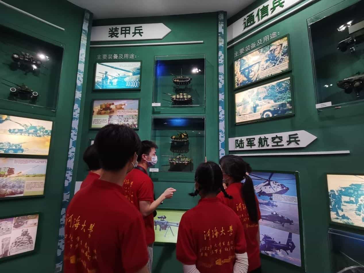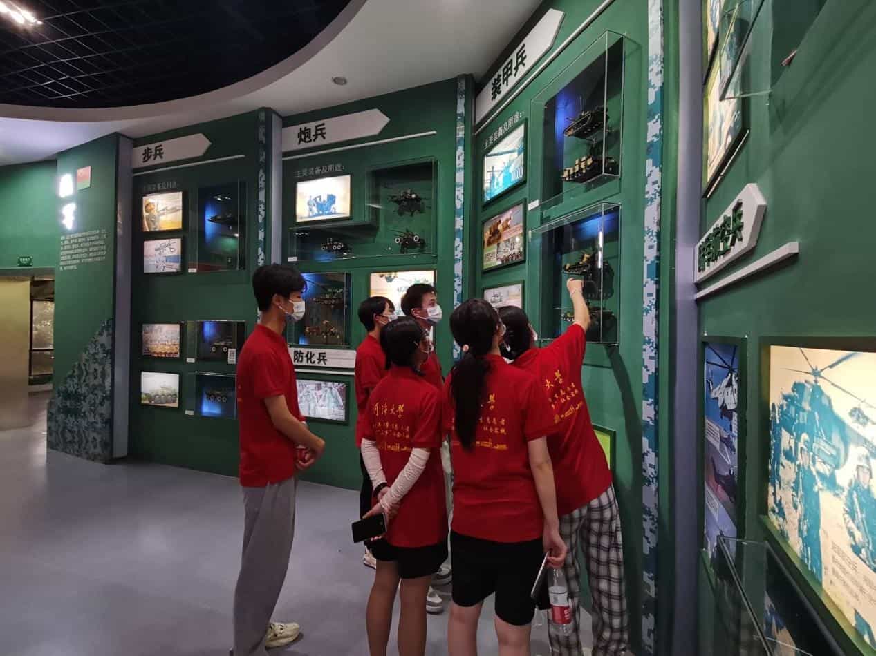 在了解完中國人民解放軍的光輝歷史之后,我們便步入了國防教育軍兵種館。從陸軍到海軍再到空軍,海陸空協同發展,一系列新式裝備武器令人眼花繚亂,令人不禁感概祖國國防的強大!并且在實踐團中一名退伍軍人同學的講解下,所有團隊成員都對我國國防武器裝備領域有了更為深刻的了解,并為之感到激動自豪。