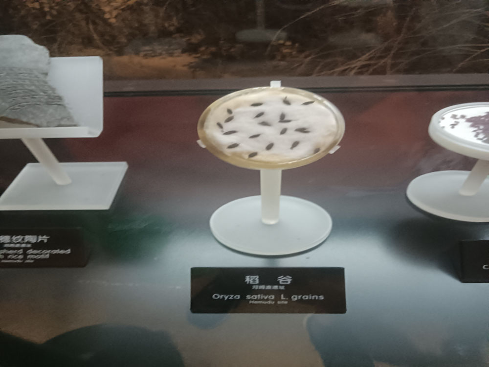 河姆渡遺址出土了大量的碳化米粒與稻谷堆積物以及稻作工具。經研究資料表明,出土的稻谷大部分為栽培稻。早在7000多年前,河姆渡先民就已經有了人工栽培水稻的歷史。河姆渡先民們在年復一年的野生稻采集過程中,逐漸掌握了野生稻的生長規律,并將其馴化為栽培稻。河姆渡文化的稻作已進入“耜耕農業”階段,并形成一個較完整的體系,成片的古稻田,大量的骨耜,成堆的栽培古稻,是河姆渡稻作農業發展水平的直接證據,也表明河姆渡文化擁有豐富的稻作文化,因此河姆渡文化也被確認為中國稻作文化起源之一。