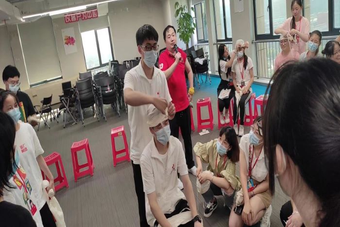 相輔相成、學(xué)以致用。活動前期,叁玖實(shí)踐隊(duì)分頭行動,一組成員以志愿者的身份作為助教,跟隨武漢市紅十字會到達(dá)武漢多家企業(yè)進(jìn)行急救宣講培訓(xùn)和問卷調(diào)查。隊(duì)員們幫助紅十字會老師現(xiàn)場發(fā)放信息表、救護(hù)證考試題及進(jìn)行急救知識技能調(diào)研等相關(guān)工作,老師們用通俗易懂的語言,深入淺出、圖文并茂地講解了如何進(jìn)行高質(zhì)量的心肺復(fù)蘇、突發(fā)意外事故的應(yīng)急救護(hù)、外出血、骨折等急救知識內(nèi)容。隊(duì)員們聚精會神地聽講,認(rèn)真拍照、記錄,積極互動,同時在實(shí)操環(huán)節(jié)中,小助教們手把手指導(dǎo)參訓(xùn)企業(yè)員工,詳細(xì)講解了創(chuàng)傷包扎的操作流程,并借助繃帶、三角巾,現(xiàn)場演示了人體不同部位受傷的包扎方法,提示注意事項(xiàng),糾正動作不到位的地方,力求大家每一個動作都標(biāo)準(zhǔn)、到位,以求培訓(xùn)取得實(shí)效。參訓(xùn)職工們普遍反映所學(xué)的應(yīng)急救護(hù)知識非常實(shí)用有效,將在以后的工作、生活中向身邊的人積極傳遞“救”在身邊的理念。