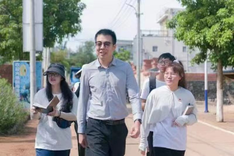 (圖注:放坡村駐村第一書記帶領社會實踐隊調研民宿產業)