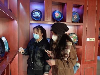 隊員們還了解到博物館應用了虛擬現實(VR)技術,只需關注博物館公眾號即可打開VR視角,隨著手機鏡頭轉動,便可身臨其境參觀博物館。這種形式讓非遺能夠“聽得見”“帶得走”“學得來”,使之觸手可及。隊員們體驗后連連贊嘆,表示這種形式既能保存非遺作品,又能讓大眾更方便地參觀、了解非遺,可謂一舉兩得。
