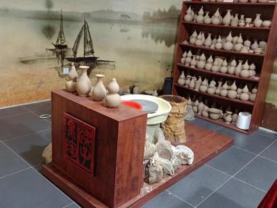 隨后,實踐隊員跟隨工作人員來到一處工作臺,這便是制陶匠人向游客展示黑陶制作過程的地方。只是受疫情影響,匠人近期無法來到館內展示,實踐隊員們對此頗感遺憾。工作人員介紹道,除了在博物館內展示黑陶制作過程,梁子黑陶還積極組織陶藝進校園活動。目前,梁子黑陶文化園已經成為多所大、中、小學生校外實驗基地。不僅讓大家體驗到制陶樂趣,也拉近了人們與非遺之間的距離,讓更多的人領略非物質文化遺產所散發的獨特魅力,了解非遺,接觸非遺,在人們參與的過程中提高社會的非遺保護意識,弘揚中華民族的傳統文化,感知中華傳統文化的魅力。