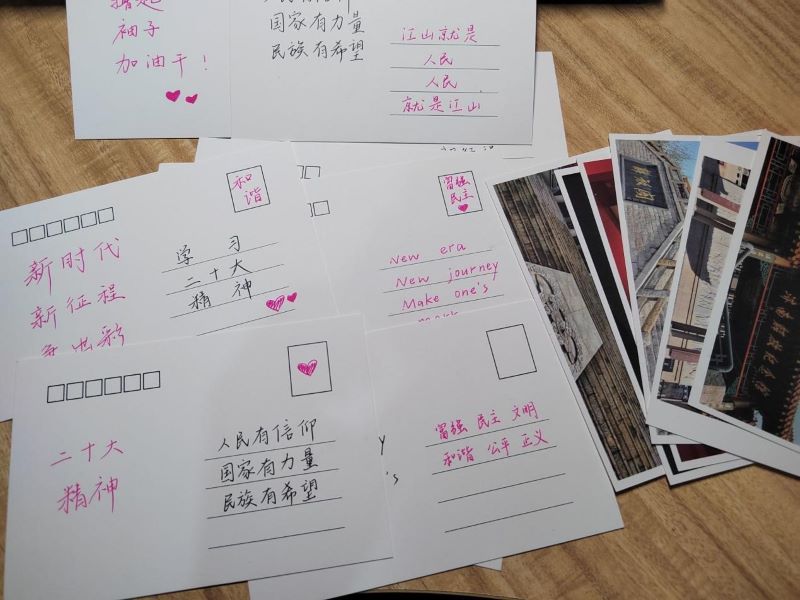 為進一步宣傳和弘揚二十大民生精神,加深對二十大民生精神的認知與理解,曲阜師范大學翻譯學院二十大譯心益民實踐隊采用繪制明信片的方式來領悟并弘揚二十大。