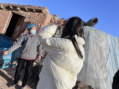 圖為調(diào)研隊員走訪當?shù)剞r(nóng)戶。中國青年網(wǎng)通訊員 邱明霞 攝
