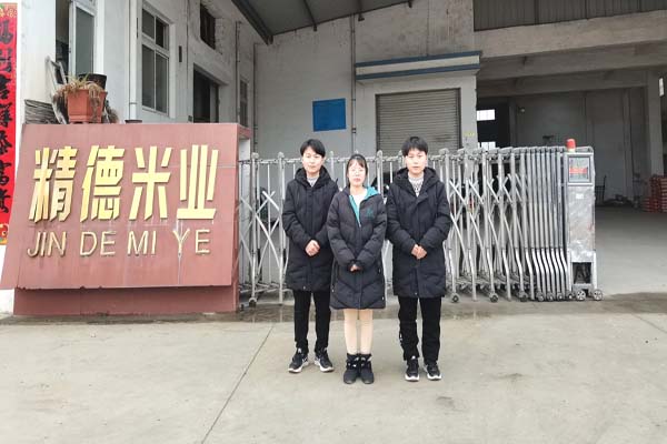 精德米業有限公司自成立以來,不斷的開拓創新,找尋出了適合自己的生產模式,并帶動了當地的發展。1月10日,團隊成員開始前往該公司進行調研。首先,團隊成員在該公司負責人的帶領下觀摩了整個稻米生產加工流程。從稻谷的脫殼加工,到一粒粒精細的大米裝袋碼放,整個過程科技的作用不可或缺。在團隊成員的邀請下,精德米業有限公司的員工向團隊成員詳細的介紹了整個稻米產業鏈的模式,包括初期如何選種施肥、中期如何收獲儲存加工以及后期如何出售等,還帶著成員參觀了大米種植基地。團隊成員也在工作人員的指導幫助下,親身體驗了一下整個生產加工過程。