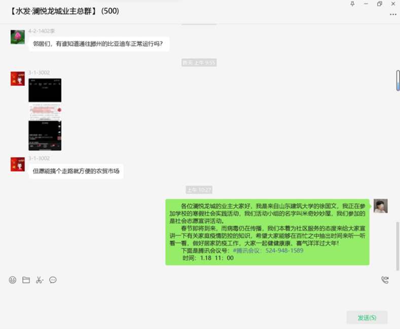 在社區(qū)群里公布會議號和宣講主題內(nèi)容)