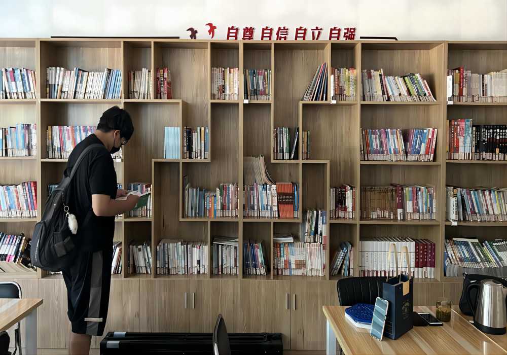 離開文體活動廣場,隨著腳步的移動,實踐隊員們來到了萬春園社區(qū)的圖書閱覽室。社區(qū)內的圖書閱覽室共分為兩個區(qū)域:圖書陳列區(qū)和閱讀自修區(qū)。圖書陳列區(qū)中書本按照圖書類別整齊地擺放在書架上供居民借閱。閱讀自修區(qū)則是供居民閱讀記錄的場所。在走訪過程中,實踐隊員們發(fā)現(xiàn)圖書閱覽室內配備有許多志愿者。這些志愿者主要負責陪伴幼兒或輔助老年人進行閱讀。他們熱情、耐心、體貼的服務贏得了社區(qū)居民的一致好評。隨后實踐隊員和志愿者一起與居民們建立了閱讀分享交流群,共同在線上分享閱讀的樂趣,找到志同道合的朋友,同時向居民們普及了閱讀的重要價值。在交流過程中,一位學生家長談到:“在社區(qū)內建立這樣一個閱覽室實在是太有必要了!一方面能讓孩子和家長在閑暇時間學習到文化知識,陶冶自己的情操,充實自己的精神世界;另一方面還能讓我們的社區(qū)生活充滿文化氣息,感覺越來越愿意在這個社區(qū)居住了。”