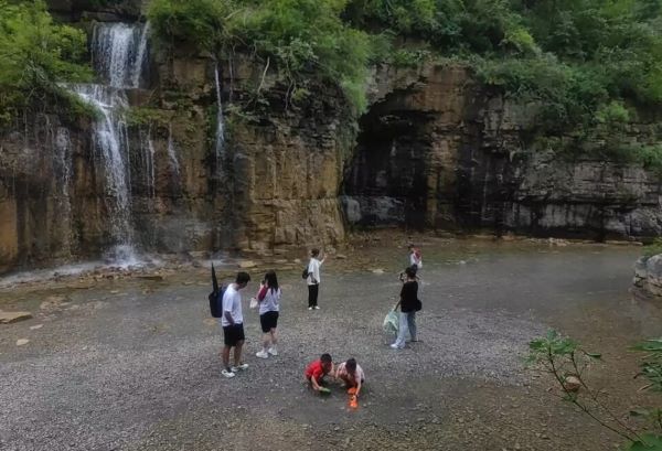 7月1日早上,實踐團成員攜帶了充足的補給物資和研究工具,乘坐網約私家車從焦作市區前往修武縣云臺山風景區,為應對突發天氣情況,以及在炎炎夏熱保存觀光的體力和心情,決定通過官方大巴車進行參觀。伴隨著舒爽的山風,實踐團成員到達了潭瀑峽景區,入大門,是一個極大的廣場,被裝飾得十分典雅。廣場右側是一條寬闊的河流,兩岸植滿楊柳,仲河中央建有太極拳表演舞臺、排筏體驗區、跨河游戲區、情人橋、地質博物館等,沿著路標往前走,穿過潭瀑峽步道來到了聚潭瀑峽流水的大片水域的渡仙潭。