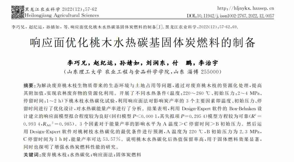 為了深入開展桃木聯合糞便還田實驗,實踐團成員在負責人的幫助下收集廢棄桃木樹枝并進行碾碎處理。在前期“李巧兄,趙紀運,孫婧如等.響應面優化桃木水熱碳基固體炭燃料的制備[J].黑龍江農業科學,2022(12):57-62+69.”研究的基礎下,實踐團成員開展發酵實驗試點,將數據收集、整理、匯總后發送至學校新能源科學與工程實驗室,實驗室成員將進行綜述撰寫以及廢棄桃木聯合雞糞制取沼液的改良實驗。