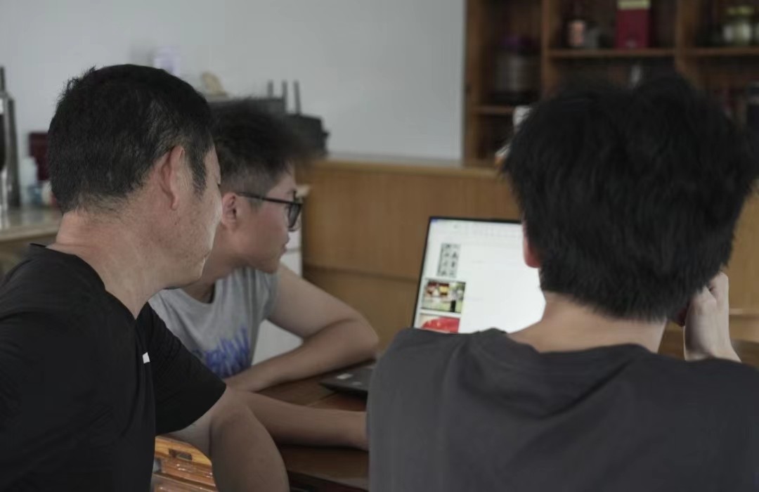 圖3東案鄉(xiāng)田蓬村實踐團成員在對墻面設(shè)計的不同意見進行探討