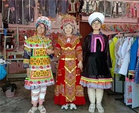 圖為實踐團成員體驗三種不同風格的苗族服飾。