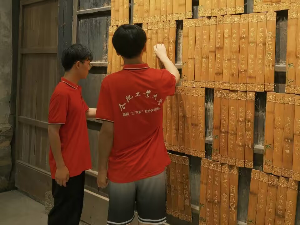 上午,實踐團隊先前往鄉賢館,感受四合獨特的鄉賢文化。四合鄉人杰地靈,古往今來賢達輩出,具有深厚的鄉賢文化傳統。四合鄉鄉賢館根據明清古宅改造而成,選址在宏霞村鄒恩雨故居,通過整理四合耿、焦、劉、裘四大姓的歷史變遷,故里鄉賢的人物事跡,以及由此衍生的獨具四合特色的非物質文化遺產,展陳鄉賢文化對四合社會發展的貢獻。“見賢思齊,仰圭璋而有地;揮毫興頌,鏤琬琰之無惠”,鄉賢館以鄉愁為基因、以鄉情為紐帶、以鄉賢為楷模。實踐團隊在這里探尋四合文化血脈、弘揚中華優秀傳統,感受四合鄉向上、向善的文化力量。