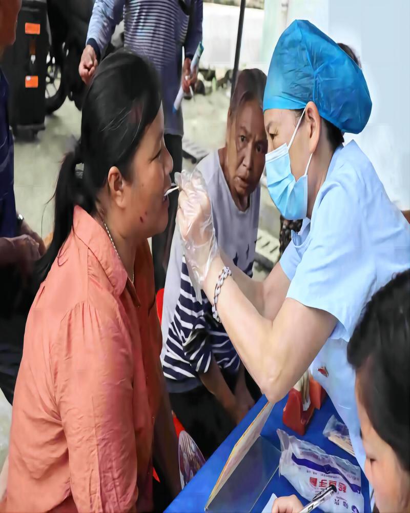 口腔組隊員協(xié)助老師一起為現(xiàn)場村民生動講解牙齒日常保健、口腔疾病預防等方面的知識,現(xiàn)場指導村民正確的刷牙方式,引導大家養(yǎng)成飯后漱口、每天早晚清潔口腔的良好衛(wèi)生習慣。同時為前來咨詢的村民進行口腔檢查,并根據(jù)他們的口腔問題給出了針對性意見及治療建議。“專業(yè)的醫(yī)療服務都送到家門口了!真是太貼心了,這才是實實在在的學有所用啊!”村兩委干部劉健笑著說道。