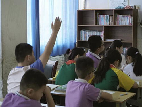 圖為班級(jí)學(xué)生積極舉手回答老師問(wèn)題
