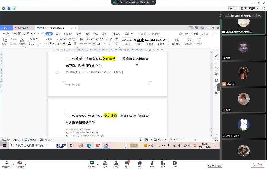 在學(xué)習(xí)交流過程中,第三組隊(duì)員們重點(diǎn)指出:實(shí)踐可以從運(yùn)用新媒體手段宣傳非遺的成功案例入手,重點(diǎn)采訪非遺傳承人,掌握第一手資料的實(shí)踐思路開展非遺媒介化的實(shí)踐活動。而第五組的隊(duì)員們則相應(yīng)從實(shí)例出發(fā),以自己身邊的非遺傳承人為例講述其通過微信、抖音等新媒體平臺宣傳非遺文化的方法。除此之外,從文化再造方面,她們還提出可以通過挖掘以微博、紀(jì)錄片等媒介進(jìn)行非遺文化建構(gòu)的例子,豐富社會實(shí)踐內(nèi)容。在非遺存續(xù)的傳統(tǒng)文化空間日漸逼仄的同時, 媒介空間中文化空間的復(fù)興, 是使非遺重獲立身的空間基礎(chǔ)的重要方式之一。