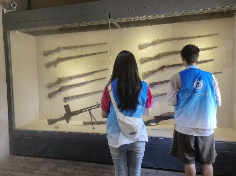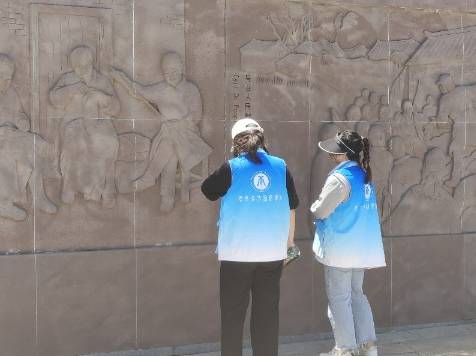 下午2:00,團隊成員們到達相山公園,步行前往參觀了將軍碑林。團隊成員們瞻仰了將軍碑林中為淮海戰役中任過軍職的將軍們的題詞,感嘆粟裕將軍等在淮海戰役中取得的豐功偉績,表達了對革命先輩的崇高敬意。參觀完將軍碑林后,團隊成員們分為兩小隊各自前往不同地點,圍繞“小推車”精神進行問卷調研。