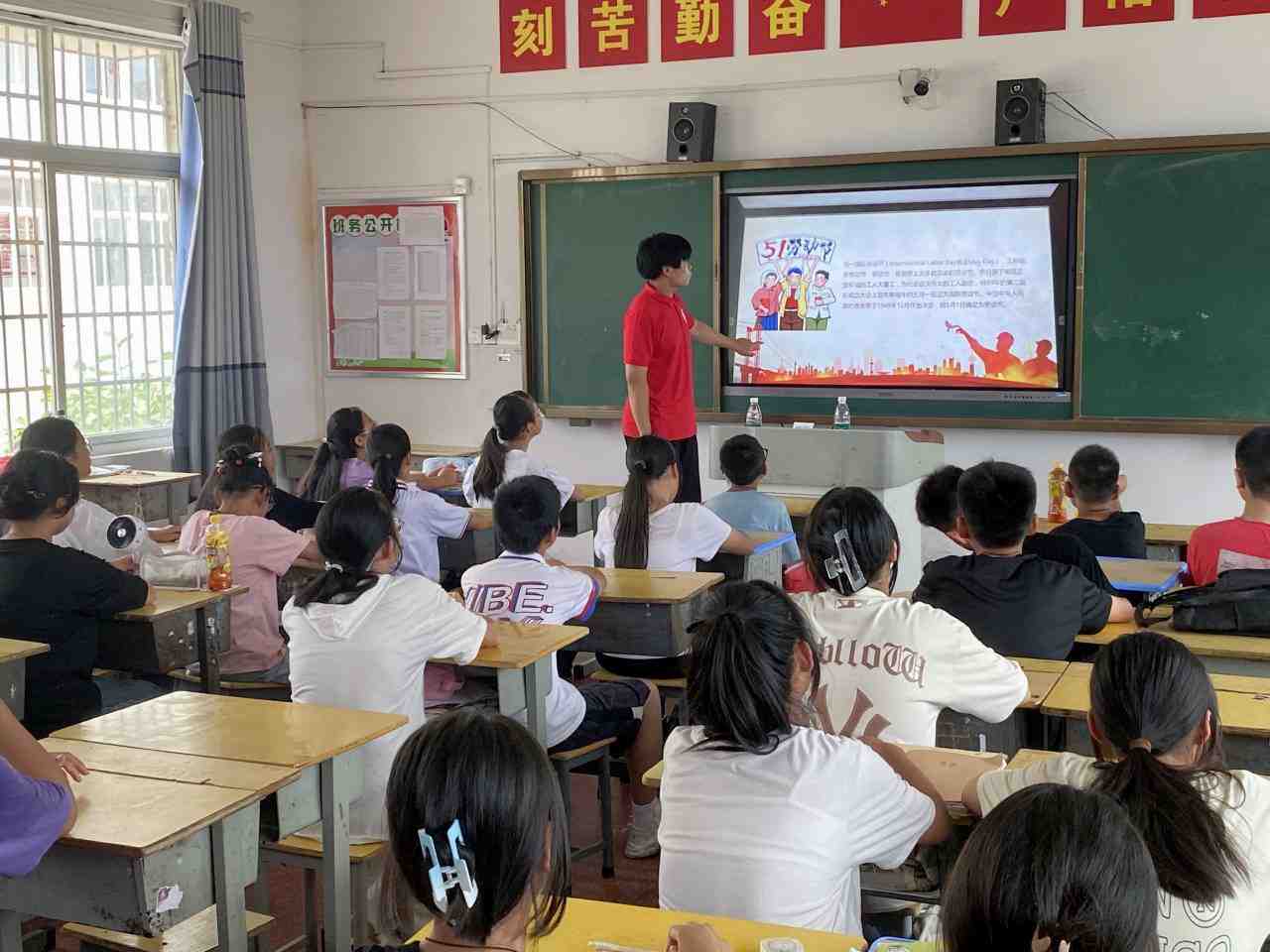 志愿者通過介紹勞動節的起源和發展,讓同學們了解幸福都是奮斗出來的。把藍圖變為現實,將革命進行到底。同學們深深地意識到 我們要堅持愛國奉獻,無怨無悔;我們要堅持愛崗敬業,爭創一流;我們要堅持為復興中國夢而奮斗。志愿者向同學們介紹了新時代楷模馬恩華、徐虎、吳仁寶等,向勞模學習,激發夢想力量。